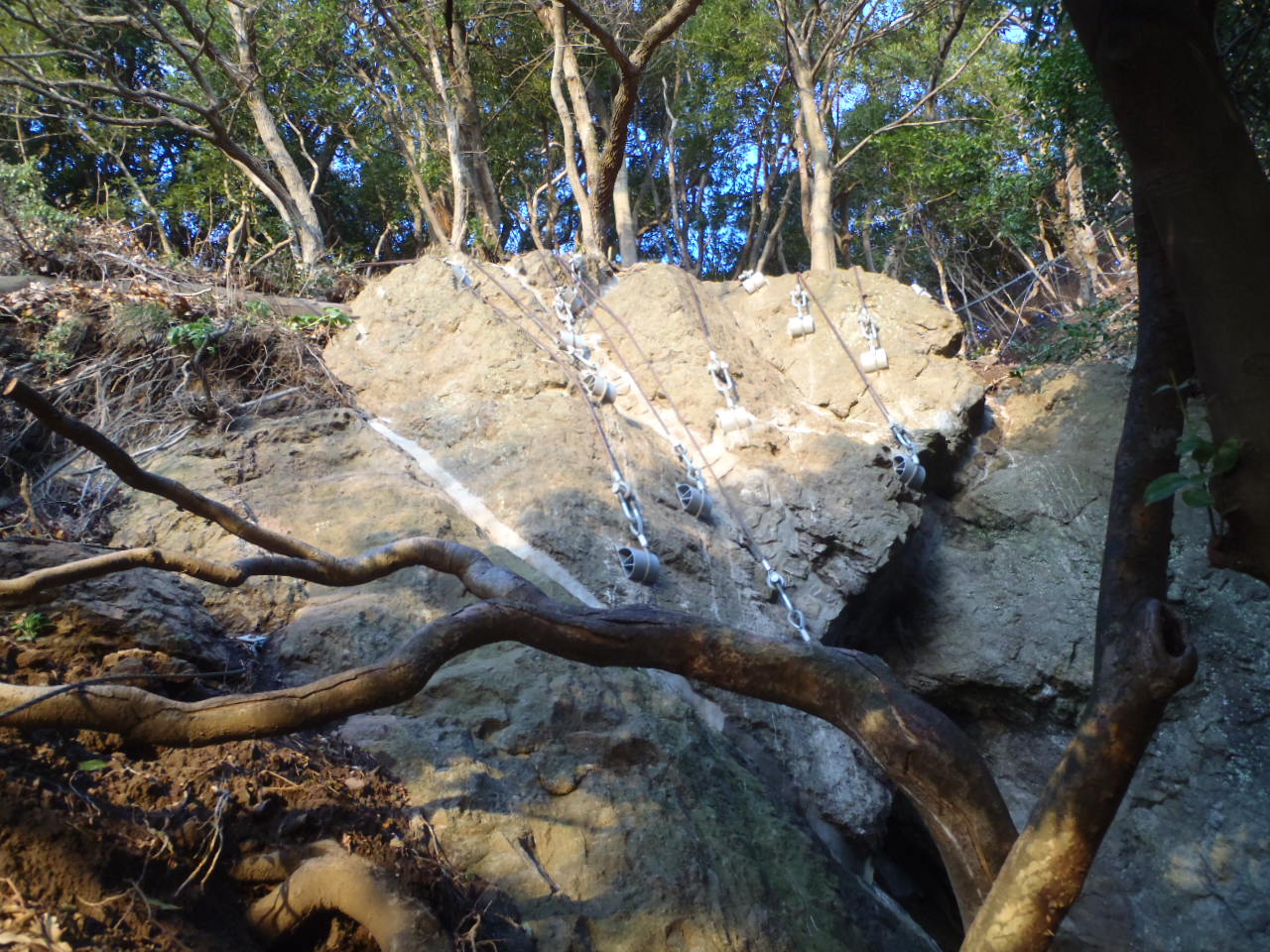 巨大岩塊固定工法